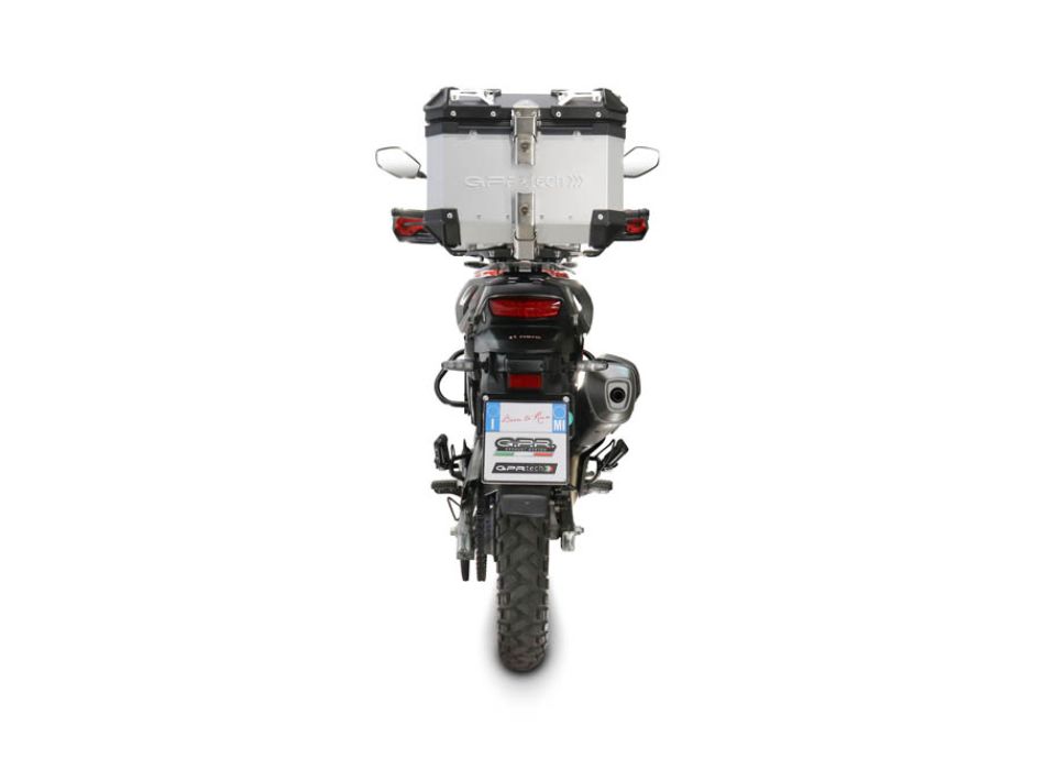 TOP CASE GPR TECH ALPI-TECH, capacidad 26 Litros, fabricado en aluminio 5052, con esquinas reforzadas, color plata con placa específica y herrajes incluidos para poder montar el producto en el portaequipajes trasero original sin ninguna modificación. Este Top Case permite colocar un casco de Enduro. El baúl GPR TECH incluye un forro lavable y extraíble para la protección del casco. La protección del respaldo y la bolsa de objetos extraíble se compran por separado.